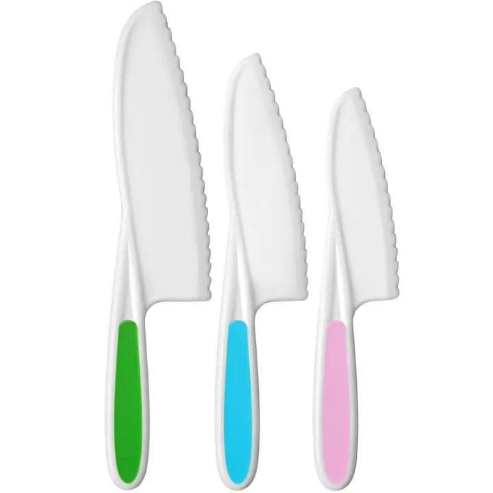 Perfect for Young Aspiring Chefs: Encourage your child's love for cooking with this 3-piece knife set for kids, designed to build their confidence in the kitchen. Each knife features blunt tips to prevent accidental cuts, allowing kids to safely explore culinary tasks like a pro. Top-Quality, Kid-Safe Materials: Crafted from food-grade materials, these kid-safe knives are built with non-slip rubber handles that provide a secure grip for small hands. Let your little ones practice their cutting skills with tools that prioritize their safety. Versatile and Fun to Use: This set includes serrated-edge knives perfect for cutting bread, quesadillas, cheese, sausage, and a variety of fruits and vegetables, such as apples, avocados, cucumbers, and more. Your child can safely help with meal prep, making it a great kitchen companion. Ideal Gift for Young Cooks: These kid-friendly knives make an excellent gift for budding chefs on birthdays, holidays, or any occasion.