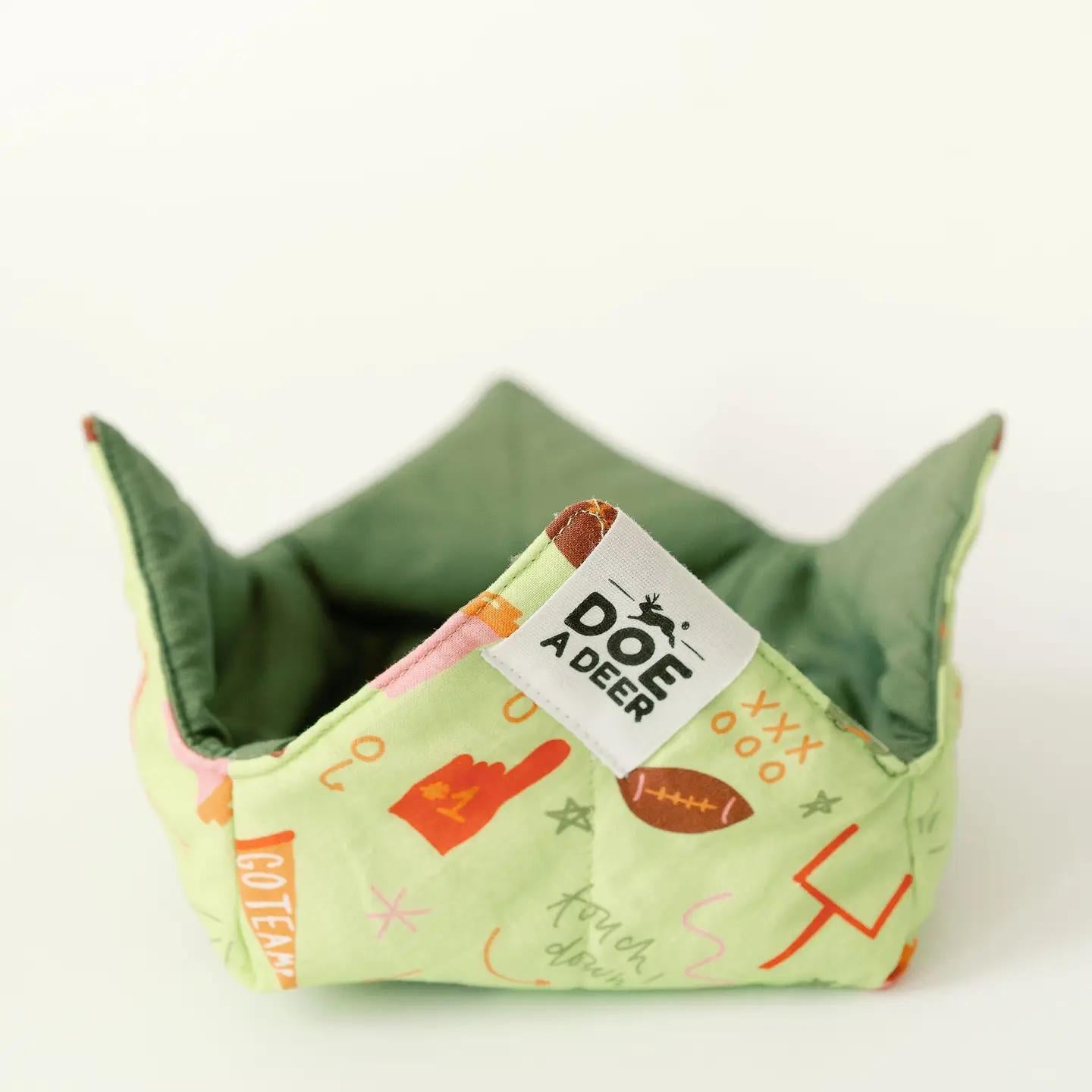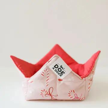 Microwave safe Keeps your hands safe when holding your warm bowl of yummy goodness Machine washable on cold; Air dry Holds a normal size soup bowl Use as a cute little basket in your kitchen when not using to heat up delicious food