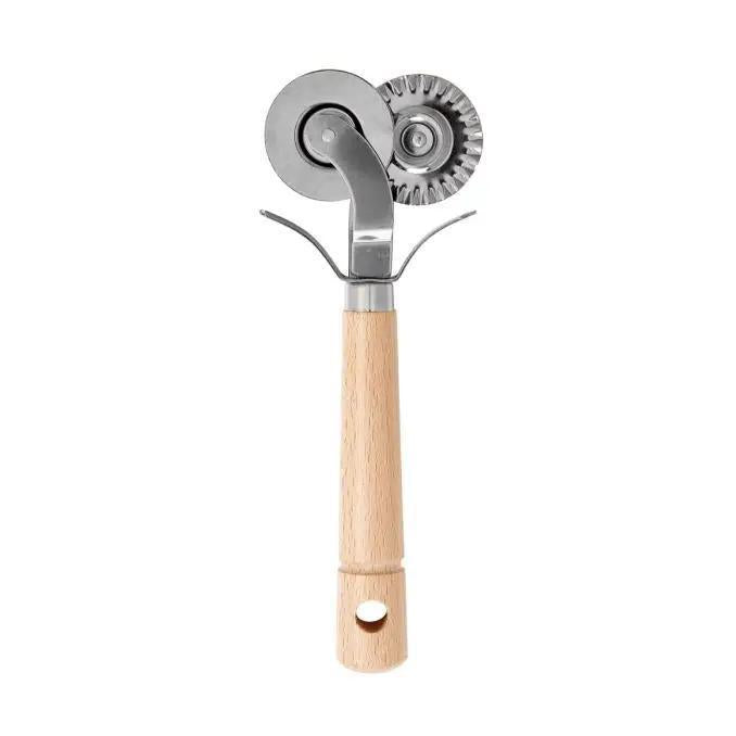 Fantes Cousin Rosa's Ravioli Pastry Cutter with double cutting wheels (each measuring 1.5-inches in diameter) cuts pastry and pasta dough with straight or zigzag edges. Use the fluted blade to cut scalloped edges for ravioli, lattice pie crusts, and decorative pastries, and the flat blade to make straight cuts for noodles, crackers, breadsticks, and more. Made from stainless steel and beechwood, Fante's Cousin Rosa's Ravioli Pastry Cutter is sturdy, durable, and hand washable. Do not soak wooden handle. Occasionally apply a light coating of mineral oil to maintain the wood. Keep fingers away from sharp blades. Fante's, The Italian Market Original since 1906. Brought to you by HIC, a third-generation family owned and operated company in the USA since 1957.