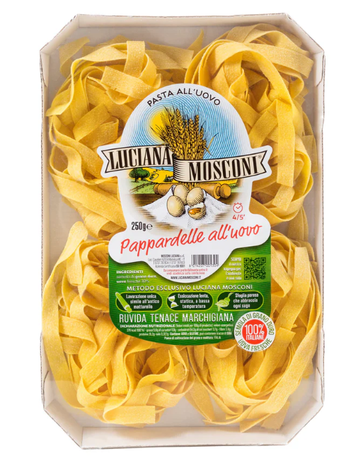 The story of Luciana Mosconi begins in Le Marche. As a child, Luciana learned to pull the dough from her mother. As she grew, so did her mastery of varied and delicious pasta recipes. In the late 1980's, Luciana opened her first homemade pasta shop, which today is know as the brand Luciana Mosconi.
