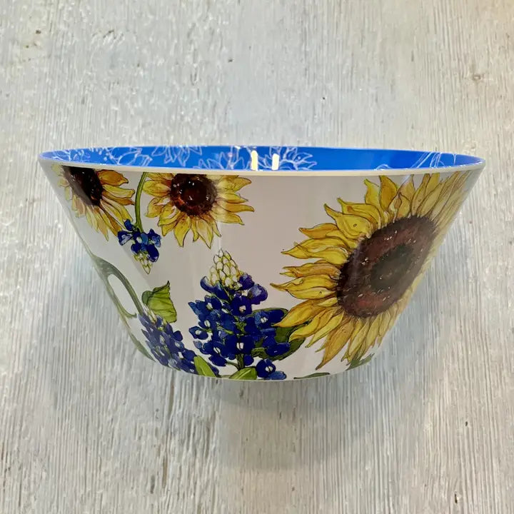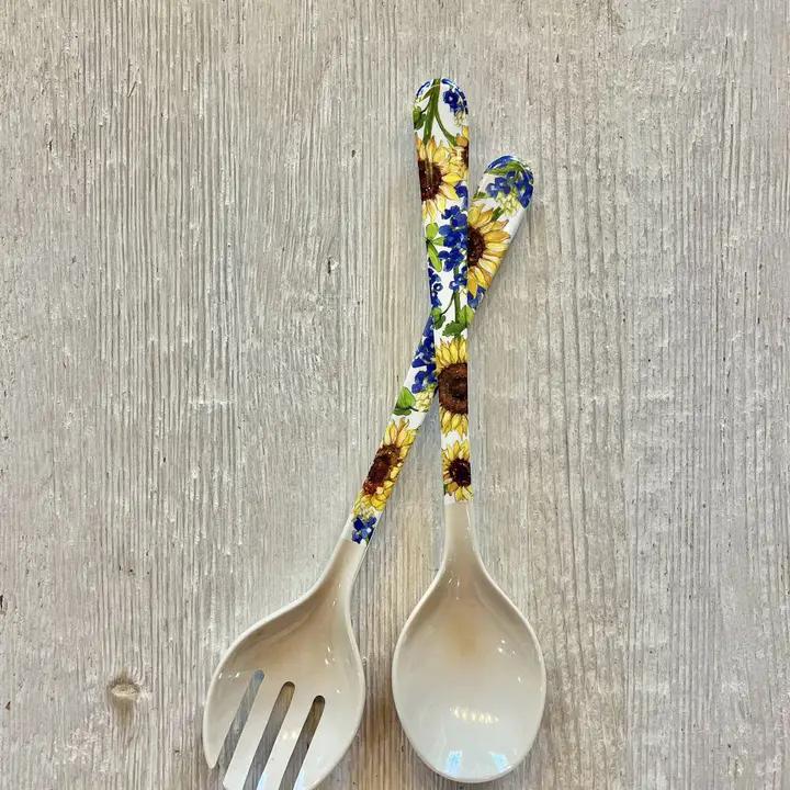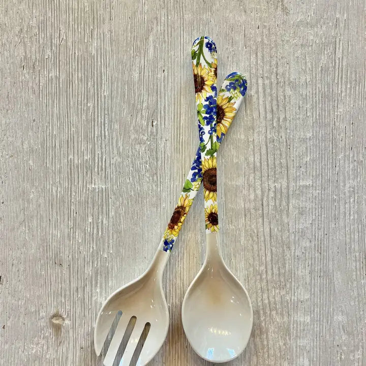 Serving Set, Salad & spoon and Salad Serving set with Sunflowers & Bluebonnets on serving handle of serving serving and serving spoon