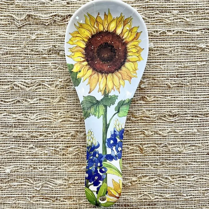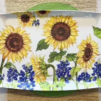 Sunflower & Bluebonnets Floral Flower Plates & Spoons