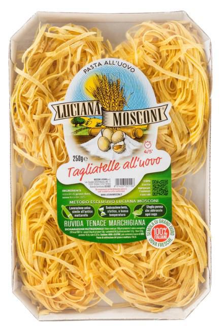 The story of Luciana Mosconi ("Lady Tagliatelle"), began in Le Marche, a region of Italy where preparing Tagliatelle is a ritual. As a child, Luciana learned to pull the dough from her mother. As she grew, so did her mastery of varied and delicious pasta recipes. In the late 1980's, Luciana opened her first homemade pasta shop, which today is know as the brand Luciana Mosconi.