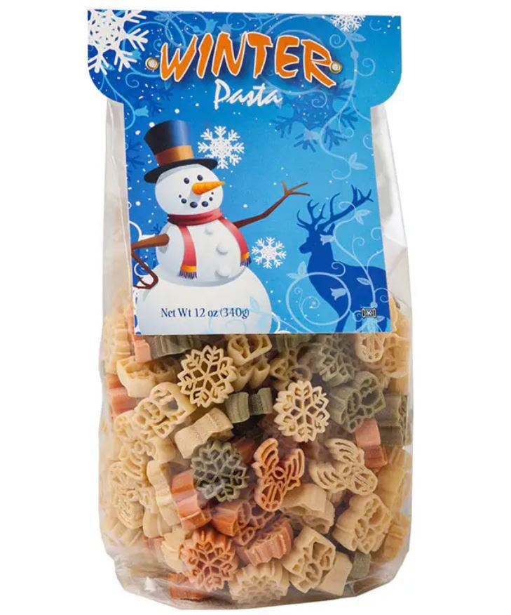 Winter shaped pasta that cooks up bright and colorful with shapes of deer, snowmen and snow flakes. Add your favorite sauce, make Mac & Cheese, or create a unique Pasta Salad.